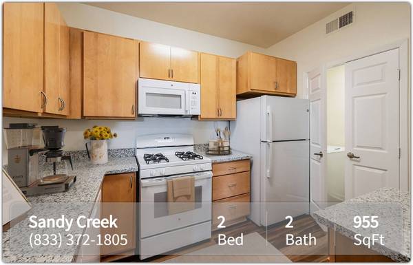 Sandy Creek Apartments will soon be undergoing multi-million-dollar renovations which will include brand-new appliance packages, granite countertops, custom cabinetry and modern wood-like flooring! The convenience of a full size washer and dryer in your home is at your fingertips, a beautiful kitchen with modern appliances and amazing storage space. Resident favorites include a basketball court, outdoor playground and pool. Start living your life to the fullest, come discover what living at Sandy Creek Apartments is all about. Your new home awaits.