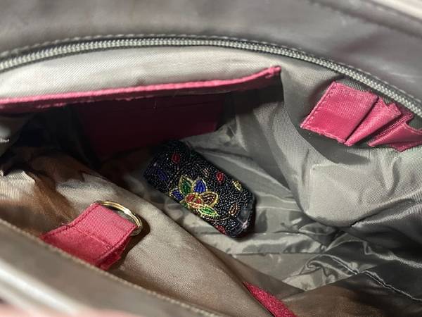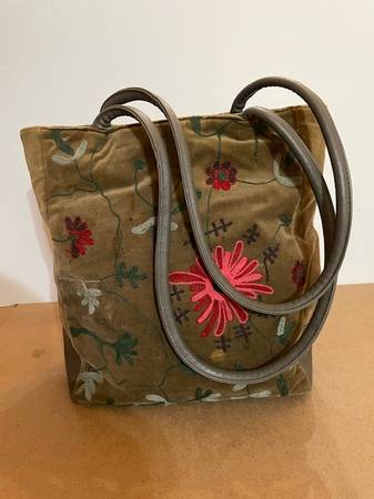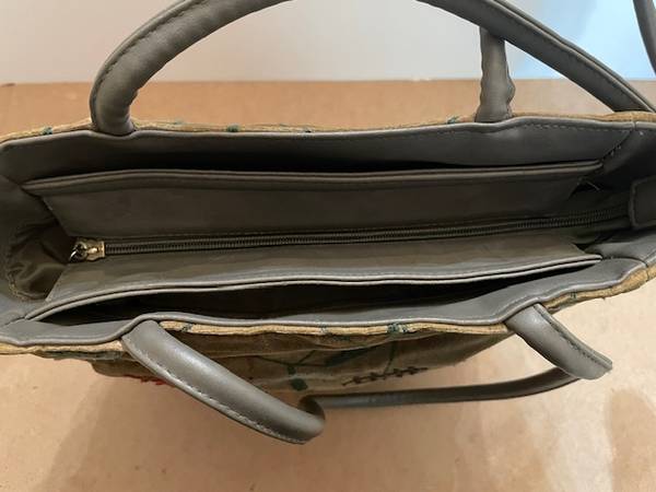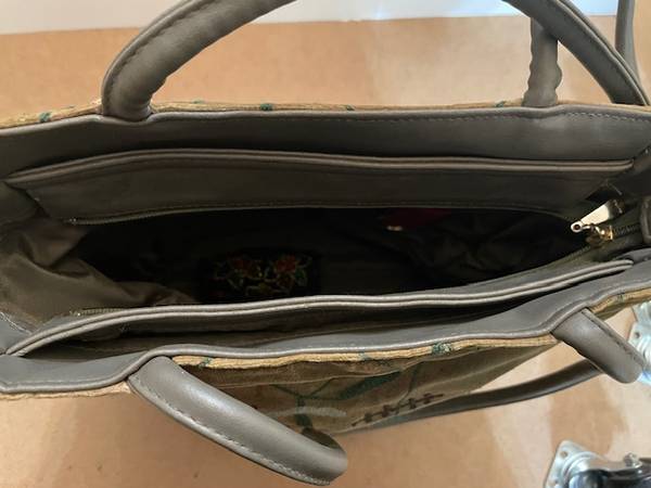 Nice Bueno brand soft-sided tote-style handbag in very good condition. Soft, sturdy velveteen-like outer fabric. Interior is both smooth fabric and either leather or faux leather. Bottom of bag is either leather or faux leather. Center compartment zips closed. The other two compartments are open access. One side compartment has zipped pocket. Interior compartment includes pen holder loops, a holder for ID and credit cards, and a hook and loop attachment for keys. Dimensions approximately 12 in. x 10 in. x 3 in. Very good condition, pretty much like new., $10. Prefer cash. Can take Venmo, Zelle, PayPal. Near downtown Bryan.