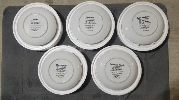 Danbury mint Songbird plate set in excellent condition. Quantity of five plates all in their separate styrofoam cases.