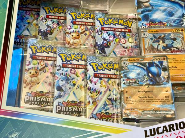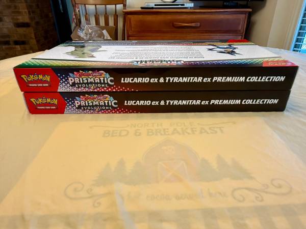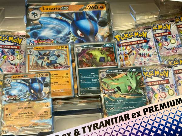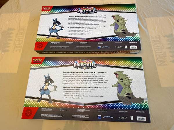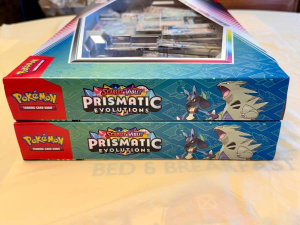 Two (2) Pokemon Trading Card Games, Sealed, NIB. Lucario & Violet Prismatic Evolutions. $120 each, or both for $220. These sets are in College Station. If you see them listed, they're available.