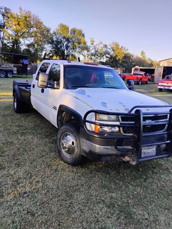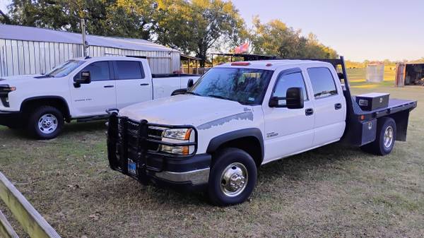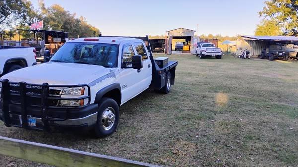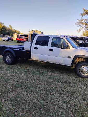 2006 Chevy duramax dsl 2WD LBZ 4 door Allison transmission flatbed. Runs good. Grill guard and gooseneck. Good tires. Has new seat covers on the front that looks factory. Back seat needs a cover, Cold AC but leaks down. Does not come with tool box on the bed or fuel tank,Call Mike for more info. $8,200.