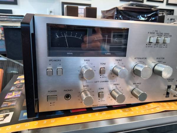 Excellent working condition. Tested on Tuner AM/FM, Auxiliary, Phono - all working. Green meter lights all on - not bright but working.