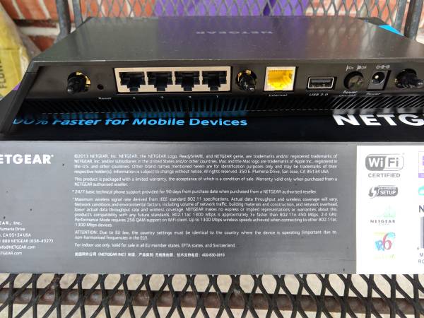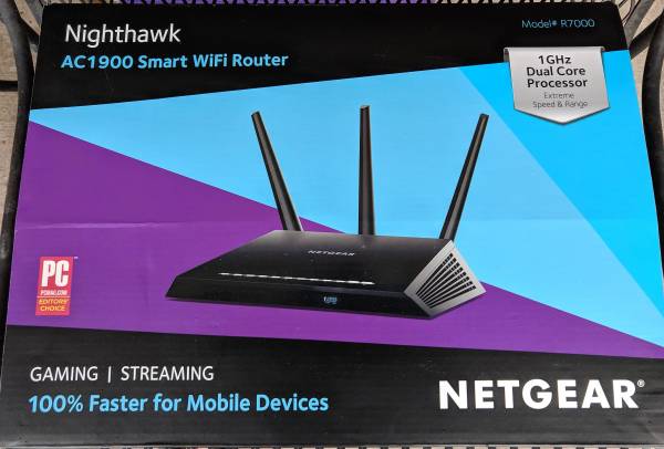 NETGEAR Nighthawk Router R7000 - AC1900 Wireless router, excellent working condition. Speed: up to 1900 Mbps ,Up to 1800 sq ft Coverage and up to 30 Devices, 2 USB ports, USB3.0 & 2.0. cash only, $55. please email if interested.