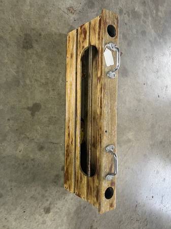 Seat Back Rest with rod holders. Teak Wood 34" W at the top X 3 1/4" D X 11 1/2" H Bottom 5" D X 33" W X 11 1/2" H 28one-387-492six MAKE OFFER