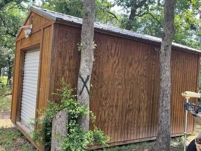 10x16 Graceland shed with roll up door and a storage shelf or work bench all the way around on the inside. Must move at buyers expense.