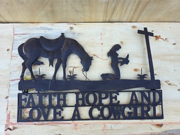 Metal Western Decor. Cowboy & Cowgirl. $20 for the pair. Located in Bryan, TX. 97nine.255.zero489.