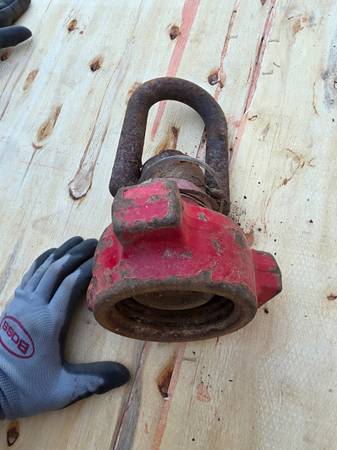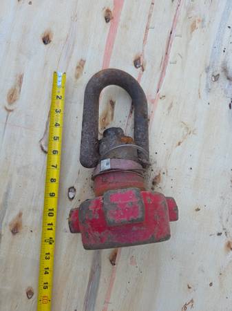 I picked this up on a property I bought. I reached out to Oilfield Industrial Supply and was told it's a swivel hoist connected to a 2” 1502 nut, likely used for lifting red iron pup joints or high pressure hoses with union connections. Another fellow I know who worked in the patch said it's for a Swage Line for cementing in most cases, picking up the cement head/lift knobbing. Also, I was told it's used for picking up big valves on a fracking crew. Oilfield Industrial Supply said this piece used is worth up to $300. I'm selling it for $250 cash. Located in Bryan, TX. nine79.two55.0four89.