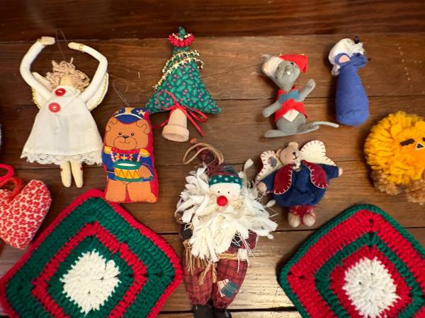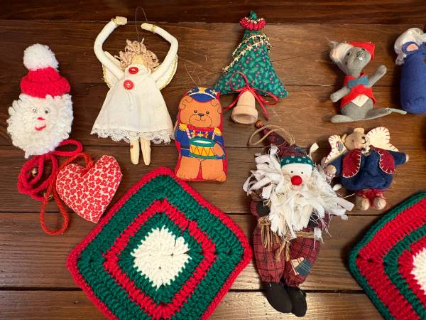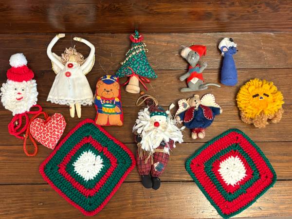 A Christmas holiday assortment of 10 ornaments and 2 crochet pot holders