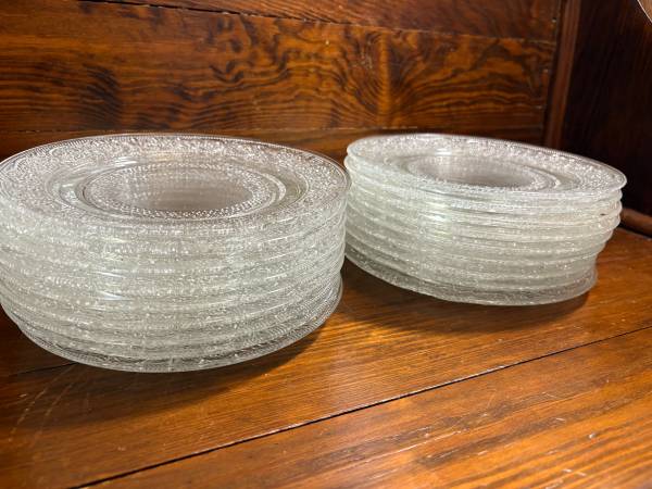 Very nice set of vintage KIG clear glass dessert plates in excellent condition. 7" diameter. No chips or cracks. Price is for the entire set of 18.