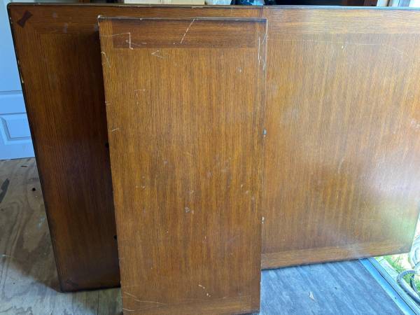 Dining table for sale solid wood heavy duty 62 inch tall without extension and 42 inch wide,with extension is 82 inch tall. just need little clean some dust from storage.
