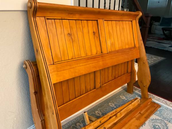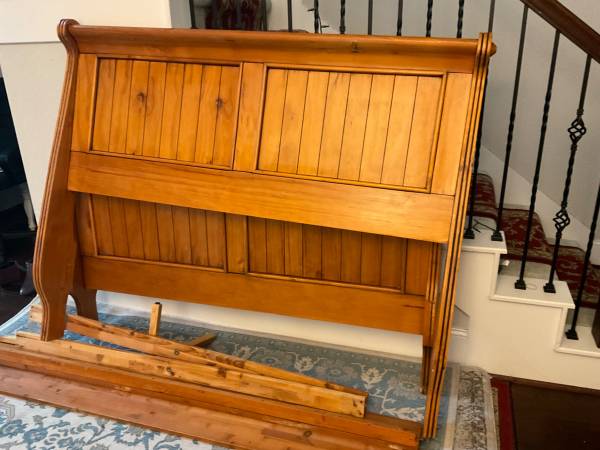 This is solid wood queen size headboard, footboard and frame, in a very good condition. Interested contact me please. Thanks