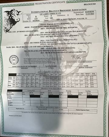 Registered Brangus Bull Sale or Lease - $5,000 (Bryan, TX)