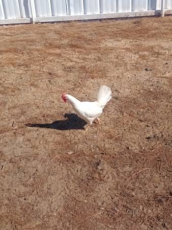 Healthy range free leghorn hens lay large white eggs asking $30 each thanks