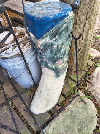 Two (choice) each $10 painted concrete cowboy boots. 18" tall.