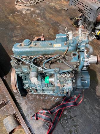 Kubota D1505 four-cylinder diesel engine approximately 38 hp engine is complete alternator starter no wiring harness no radiator radiator can be supplied at additional cost engine came off a big stump grinder was running when removed will respond to texts and emails prefer phone calls phone number can be located in left top corner purple box