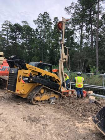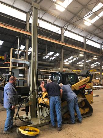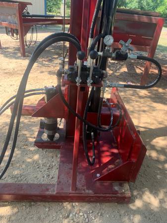 new waterwell drilling Rig to hook on your Tractor or BOBCAT and then plug in the two hydraulic hoses to YOUR Tractor or Skid steer and that runs your hydraulics it will drill to 500 ft if you buy enought drill pipe 2 3/8 9 ft tall each comes with 100 ft and a 6 or 8 inch drill bit extra drill pipe is $245 each 8 ft long drill pipe it also Rated for air or water and drills ROCK fast if you have ROCK it will run a DTH Hammer if you have one and go thur ROCK like BUTTER its 15 ft tall and 5 ft wide and can drill ur waterwell borehole any where u can put your Tractorback yards or behind houses or remote DEER Camps in remote areas so get your self all the water u need on one or two days per job one lever is up and down and one lever is DRILLING or Pull it backwards and it will unscrew your drill pipe for you fully hydraul;ic