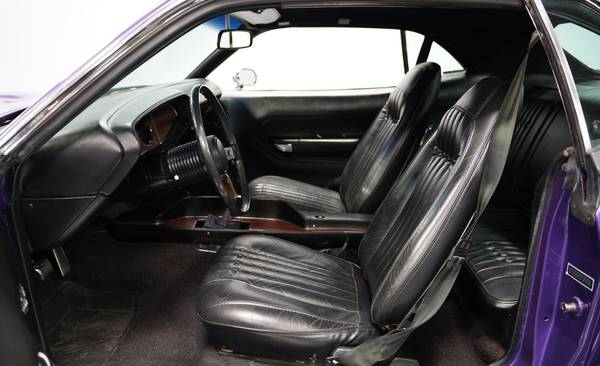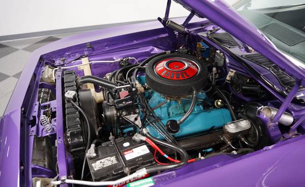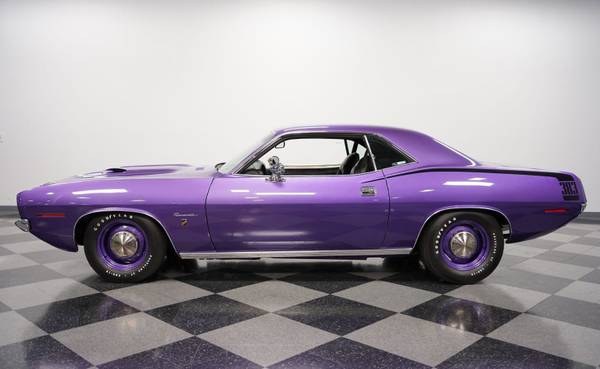 This 1970 Plymouth Barracuda Gran Coupe delivers the perfect balance of muscle and refinement, powered by a 383 Super Commando V8 paired with a 4-speed manual transmission and a Hurst pistol-grip shifter. Finished in the eye-catching In Violet paint, the car combines unmistakable Mopar attitude with upscale Gran Coupe details.