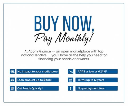 Buy Now, Pay Monthly! We've Partnered With Acorn Finance® To Offer 100% Financing WAC. Acorn Finance® is a Marketplace of Top Lenders that lets you View Offers Online without Impacting Your Credit Score. Loans are available up to $100k with Competitive Rates. If Approved at 9.95%, your payment on this Metal Building would be just $157.39 per month for 60 months, with ZERO Down Payment, tax not included. You can Apply Securely Online here at: https://metalcarportdepot.link/Acorn-Secure-Finance-Portal