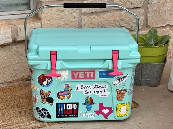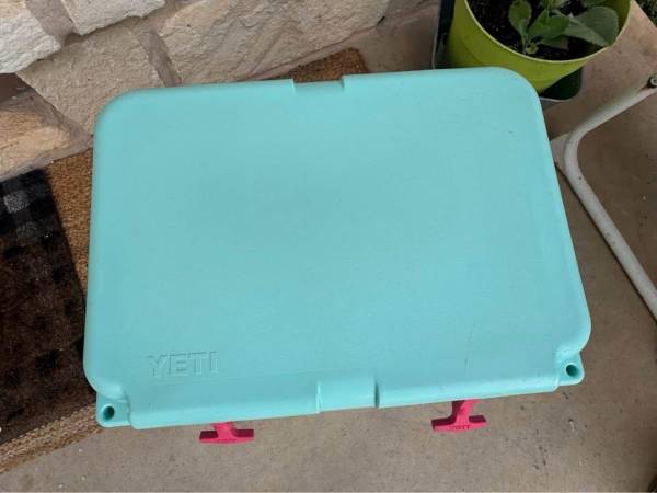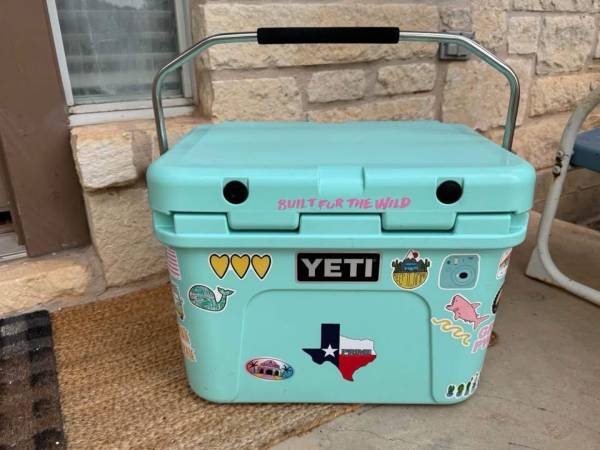 Seafoam Green Yeti Roadie 20qt. Beautiful vivid color with stickers that can come off. Very well taken care of.