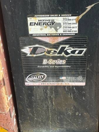 It includes a Deka D-Series 24V industrial battery but no charger is included.