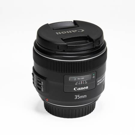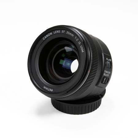 Canon EF 35mm f/2 IS USM in excellent condition. Very sharp. No scratches or scuffs. Used for indoor sports (volleyball). Fast focusing to capture action. Great for landscape photos too. Very light.