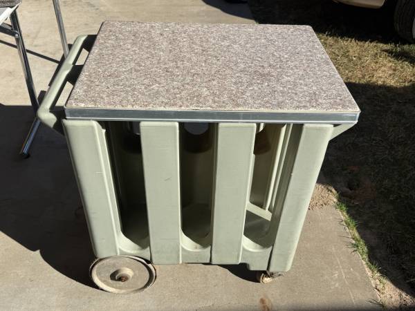 The base is a commercial-grade Cambro dish cart, so it's designed to be extremely durable. We added a custom-cut granite countertop, which makes for a great, sturdy work surface.