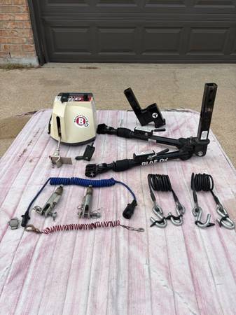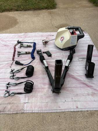 Entire tow system minus the vehicle base plate. Excellent condition! Includes tail light hookup system with 4 pin receptacle for vehicle. Less than half price for a system hardly used. Brake buddy with remote sensor to lets you know the system is active. WILL NOT SEPARATE OR PIECE OUT.