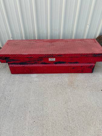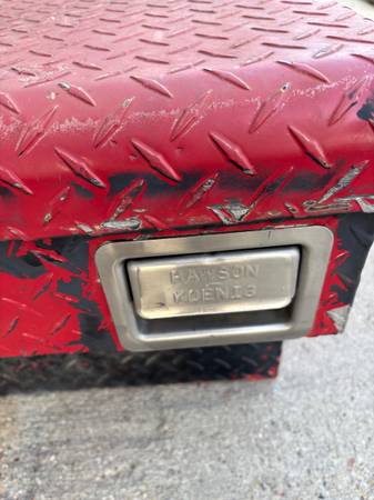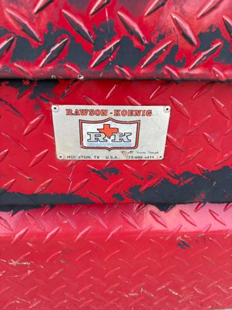 Rawson Koenig aluminum tool box. Good shape but I do not have keys and one side is locked. Original black but has been painted red at some point.