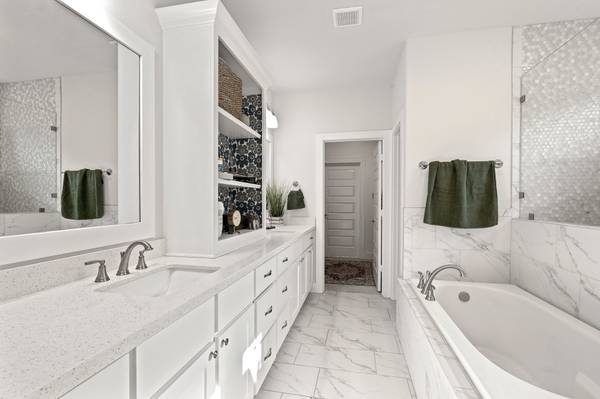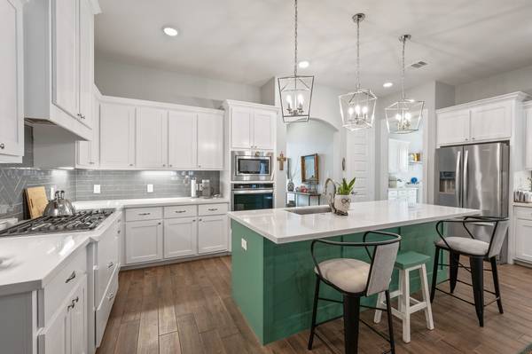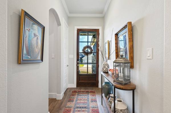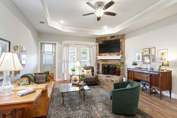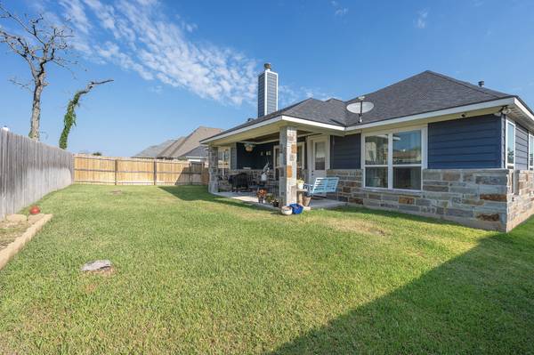 Located in College Station's desirable Brewster Pointe, this like-new Pfuntner custom home offers 4 bedrooms and 2.5 baths with countless thoughtful details. The open concept design features a spacious living and dining area with a gas-lit fireplace, natural light, and wood tile floors that extend through the kitchen. The kitchen shines with granite-style countertops, stainless steel appliances, a gas range, and an oversized island with a breakfast bar. Retreat to the primary suite with dual sinks, abundant storage, walk-in shower, and large walk-in closet. The split floor plan provides three additional bedrooms and a second bathroom on the opposite side of the home. A built-in mudroom, oversized laundry, tankless water heater, full yard irrigation, and covered patio add convenience and function. Community amenities include a stocked pond and a nature walk for residents to enjoy.