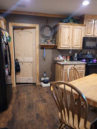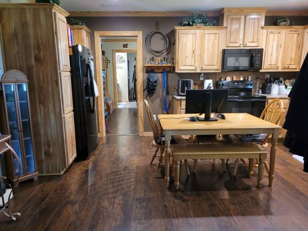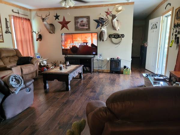 FOR SALE TO BE MOVED - 2019 Oak Creek Mobile Home - Single-wide - Presidio Model 5814 - 1,365 Lvg.Sq.Ft. - 3 Bedrooms - 2 Full Baths - New wood floors replaced the carpet and linoleum in 2022 - Pine cabinets and Pine trim throughout home - Taped-and-textured walls - Home is wired throughout with ADT Security System, including breakage detection on all windows - Refrigerator, Stove, Microwave, Dishwasher, tin skirting and porch go with the home - $66,500 Firm - No owner financing possible - Call or text Shannon show contact info