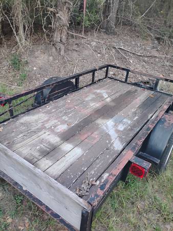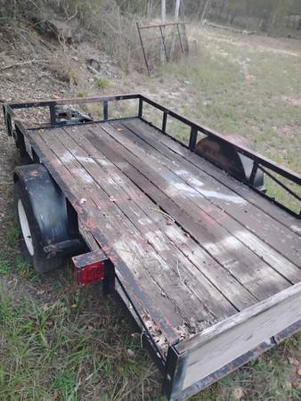 This trailer was left on my property a few months ago and I thought it might be the neighbors. It is not. It had aluminum ramps on it and looked as though someone had unloaded a lawnmower off of it. Ramps have disappeared. I'm guessing it is "STOLEN"and was left behind. It is 5x10 tilt. If you have proof that it is yours, message me and I will give you the location via Sheriff's Department. I did report it and the location.