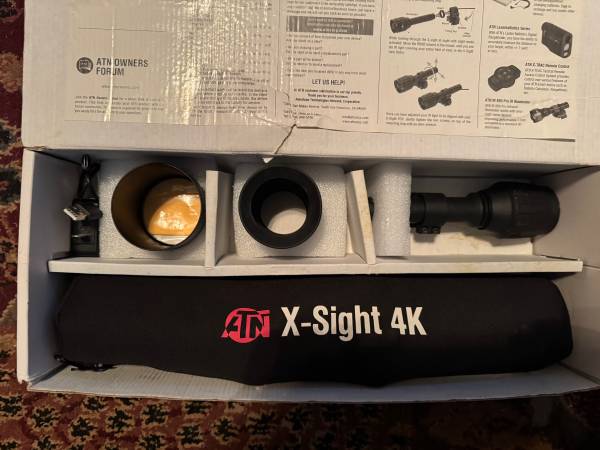 Selling my ATM X Sight 4K Pro Rifle Scope. In original box never used it. Went a different route. Very popular scope this one and save money or new one and spend more. $695.00 OBO. Call