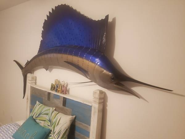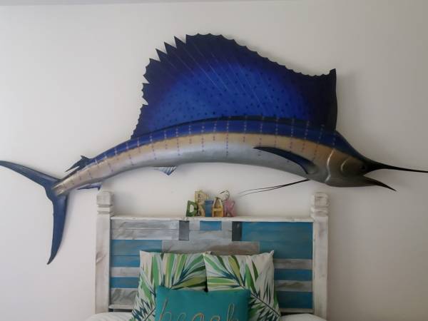 Sail Fish Custom Wall Mount 105 inches Sail Fish professional mount, removeable dorsal fin, brilliant colors for commercial or private display.