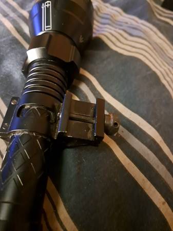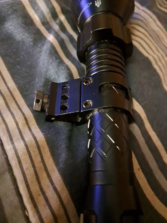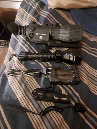 Has on-scope illuminator, comes with larger EVOL illuminator - both with rechargeable batteries.