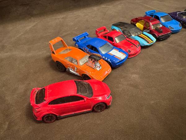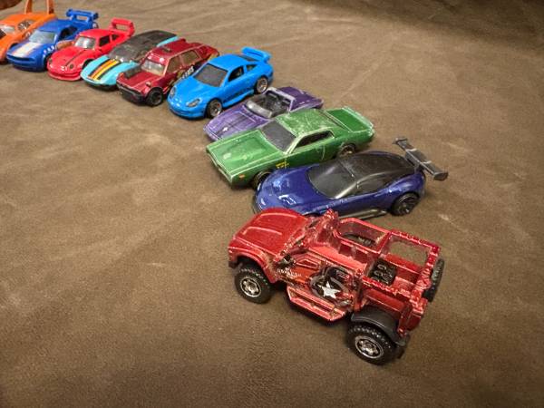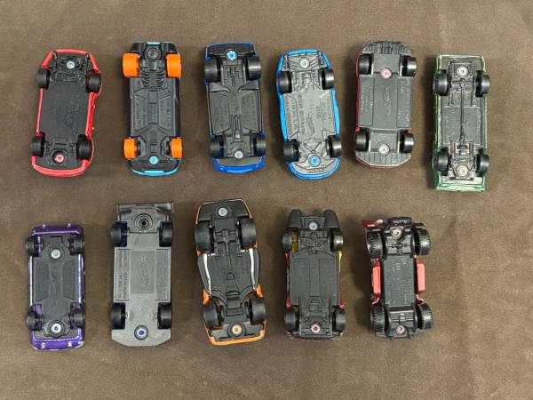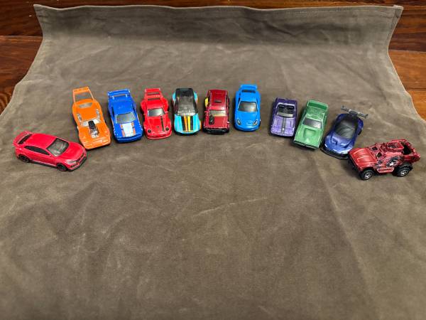 Eleven different Hot Wheels cars in generally good mechanical condition. These are used with varying degrees of paint and body wear. See photos.