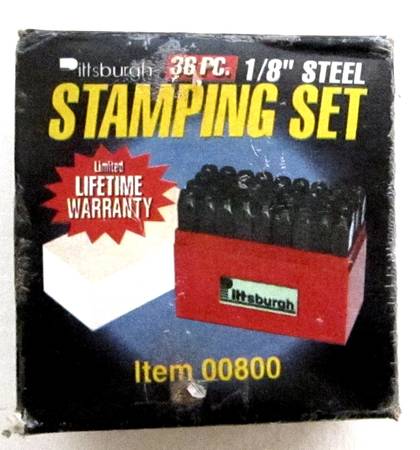 I have a 1/8" 36 piece stamp set a-z and 0-6/9 and & for sale. This is an open box set that has never been used. This is excellent for marking tools or whatever you have that you want to mark with your mark for identification purposes.