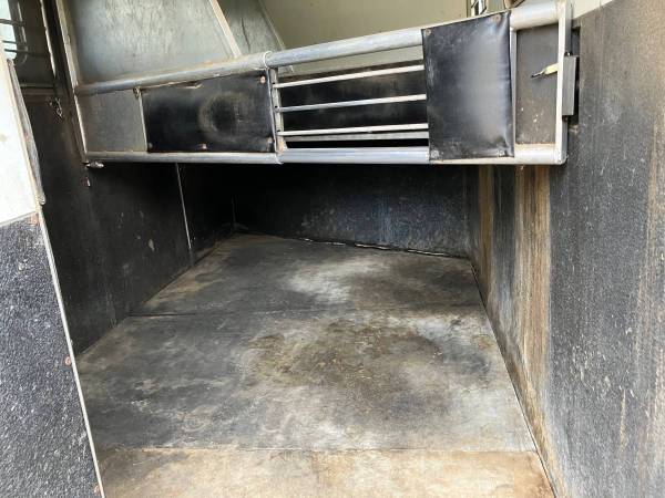 Tires are in good shape, and it includes a front dressing room, perfect for tack storage or changing space. Floors, walls, and structure are sound, and the trailer pulls straight with no issues.