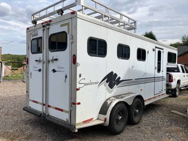 3-horse slant 1998 Sundowner load trailer in solid overall condition. The frame and lights have recently been redone, giving it a refreshed and reliable setup. Trailer is 6’6” wide and 7’ tall, offering comfortable space for your horses.