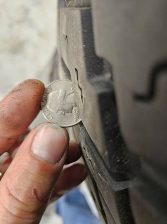 285 75 R16 on Chevy 8 lug wheels. Will fit older Fords and dodges. 2019 date code 10 ply tires 50% tread left